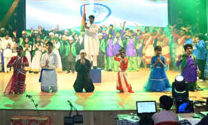 The centrepiece of the evening was a theatrical presentation depicting the life and teachings of Chanakya, brought to life by the brilliant performances of Master Amaan Khan, Arjun Bhise, Farhaan Khan, and Sammyak Gondane in the titular role. The drama was interwoven with mesmerizing dances such as Kanha Soja Zara, Thaan Liya, Vijayi Bhava, Maa Bhavani, Ghoomar, Shankara Re Shankara, Din Shagna Da, Mauli Mauli, and Bhumi Mangalam. Each performance showcased the students’ exceptional talent and dedication, leaving the audience spellbound.