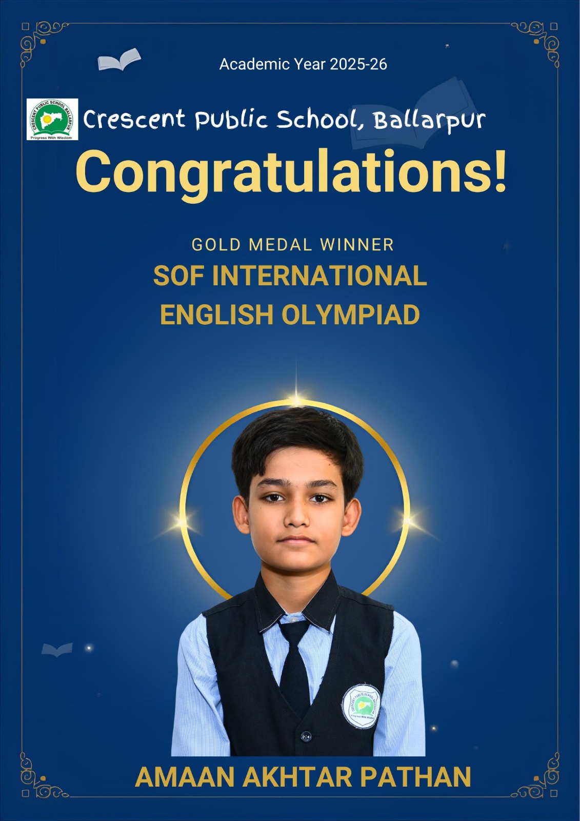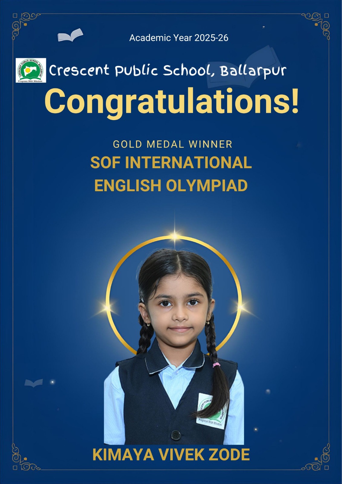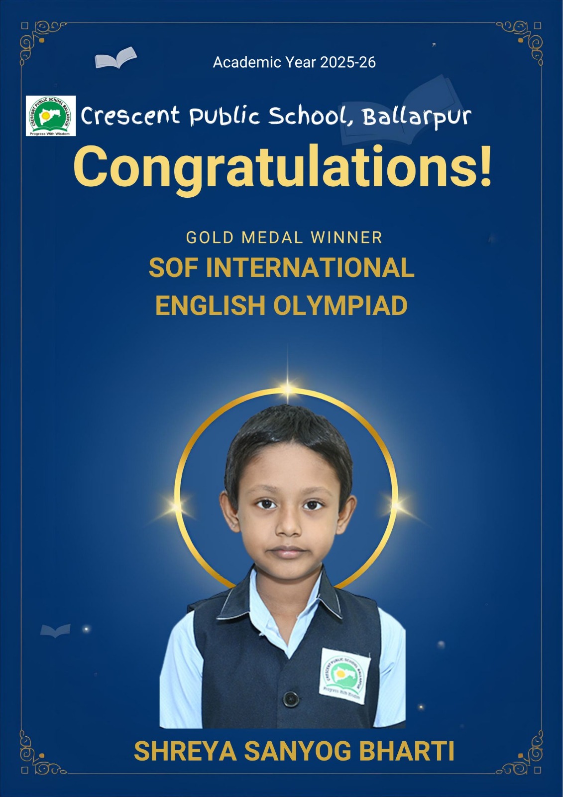 Students of Crescent Public School, Ballarpur have brought great pride to the institution by achieving excellent results in the SOF International English Olympiad (IEO) 2025–26. The students displayed exceptional proficiency in English language skills, including grammar, vocabulary, comprehension, and logical reasoning, while competing with participants from across the country.