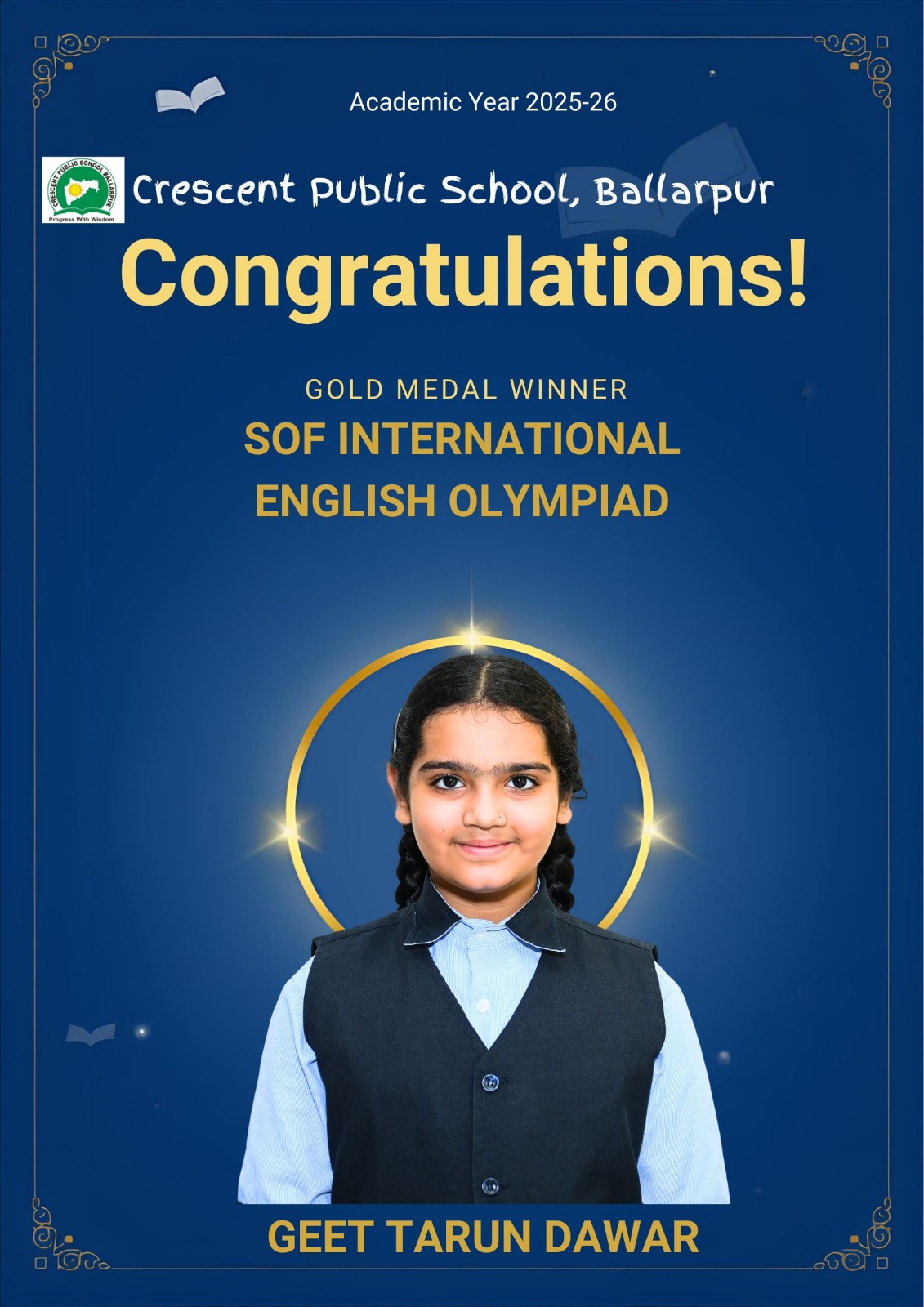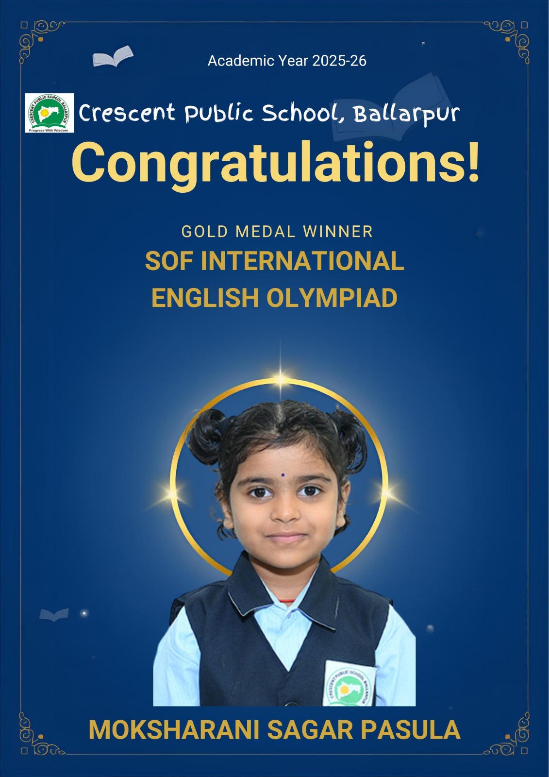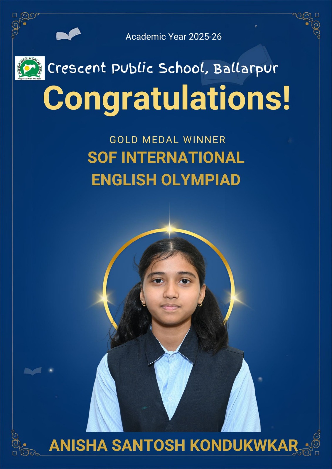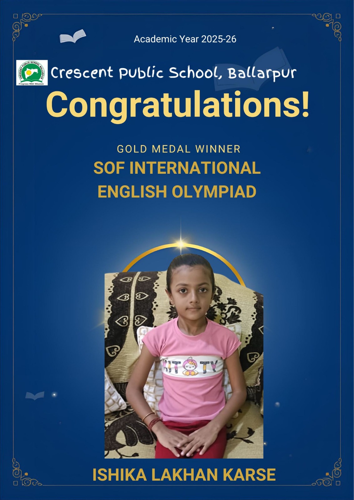 Students of Crescent Public School, Ballarpur have brought great pride to the institution by achieving excellent results in the SOF International English Olympiad (IEO) 2025–26. The students displayed exceptional proficiency in English language skills, including grammar, vocabulary, comprehension, and logical reasoning, while competing with participants from across the country.