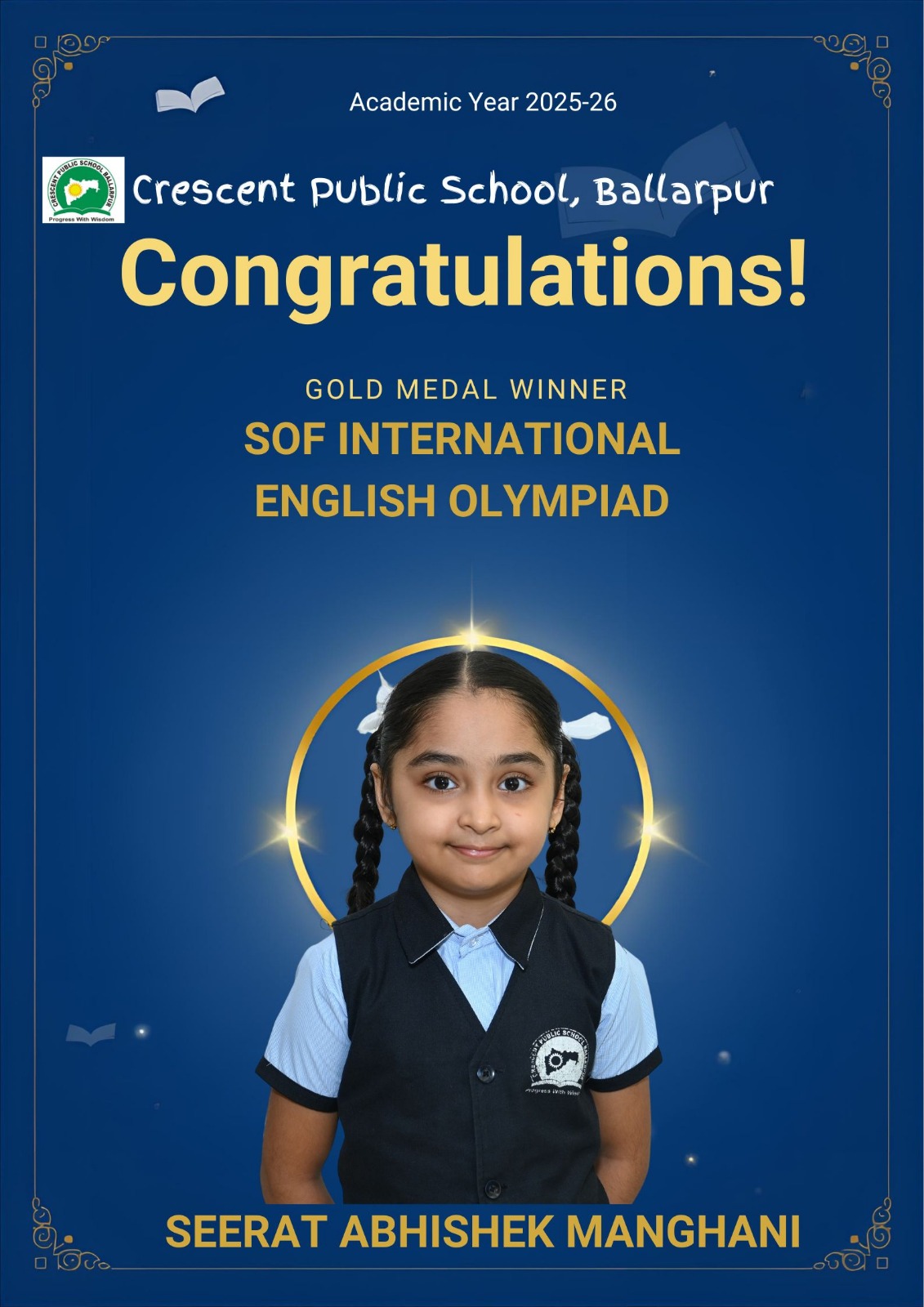 The school management also expressed gratitude to the parents for their unwavering support and cooperation. Such achievements not only enhance the reputation of the school but also inspire other students to participate confidently in national and international competitive examinations. Crescent Public School, Ballarpur remains committed to nurturing academic excellence and empowering students to achieve greater milestones in the future.